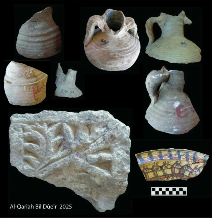 وبحسب بيان رسمي لوزارة السياحة والآثار المصرية، اليوم (الثلاثاء)، عثرت البعثة في الموقع على عدد من اللقى الأثرية، منها أمفورات تستخدم للتخزين، تحمل بعضها كتابات قد تكون حروفاً أو أرقاماً أو أسماء على أكتافها، إضافة إلى مجموعة من الأوستراكات تحمل نصوصاً باللغة القبطية، وأدوات معيشية متنوعة، وكسرات حجرية تمثل أجزاء من عناصر معمارية، إلى جانب أجزاء من لوحات من الحجر الجيري منقوش عليها كتابات بخط قبطي.
